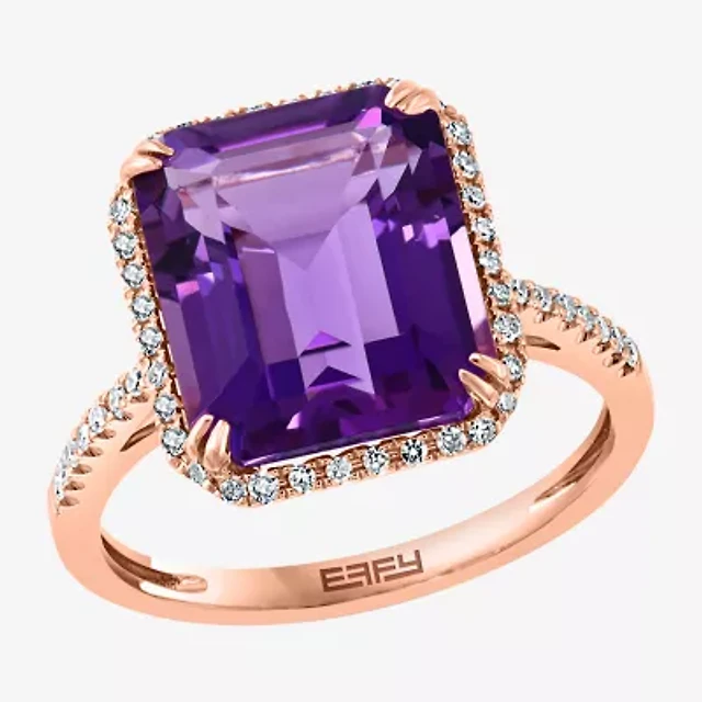 Effy Final Call Womens Diamond Accent Genuine Purple Amethyst 14K Rose Gold Halo Cocktail Ring