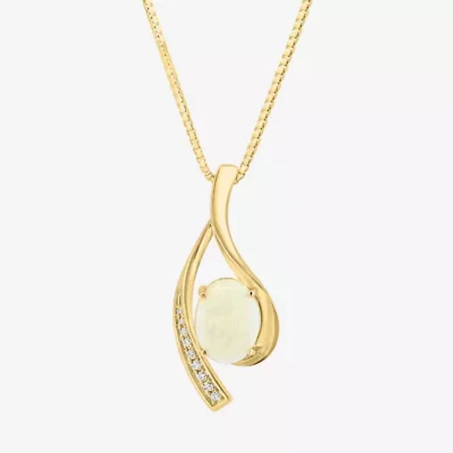 Effy Final Call Womens Diamond Accent Genuine White Opal 14K Gold 18 Inch Pendant Necklace