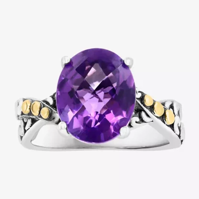 Effy Final Call Womens Genuine Purple Amethyst 18K Gold Sterling Silver Oval Cocktail Ring