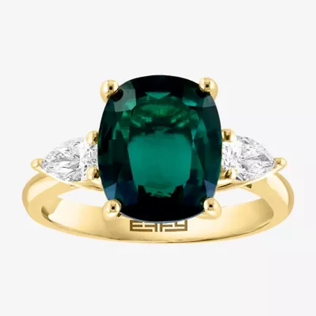Effy Final Call Womens Lab Created Green Emerald & 1/5 CT. T.W. Grown Diamond 14K Gold Pear Cushion Cocktail Ring