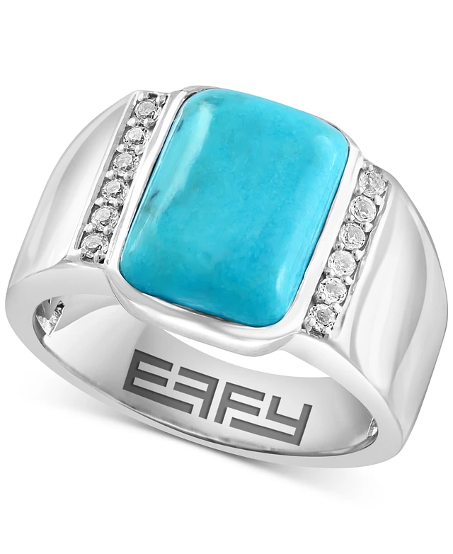 Effy Men's Turquoise & White Topaz (1/4 ct. t.w.) Ring in Sterling Silver