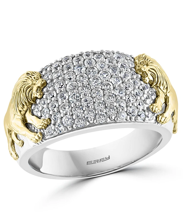 Effy Men's White Sapphire Lion Ring (1-3/8 ct. t.w.) in Sterling Silver & 14k Gold-Plate