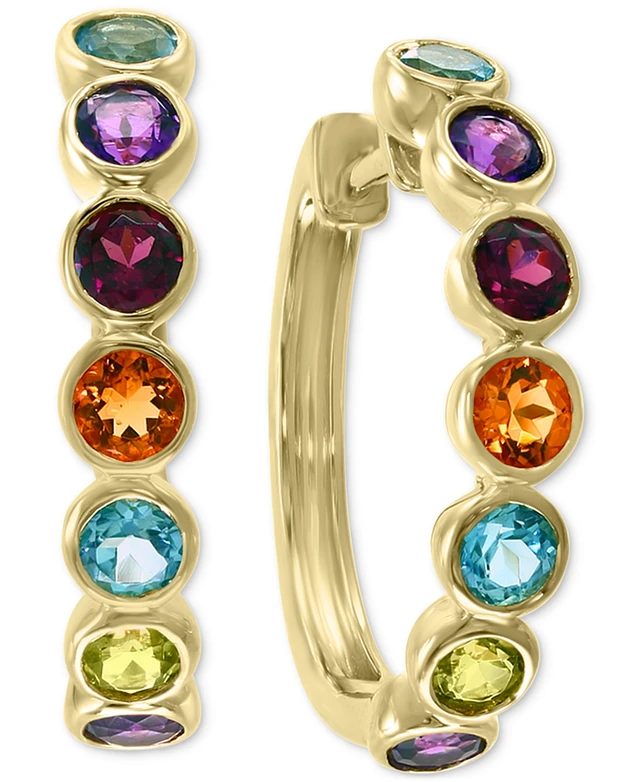 Effy Multi-Gemstone (9-1/3 ct. t.w.) & Diamond (1/10 ct. t.w.) Small Hoop Earrings in 14k Gold, 1"