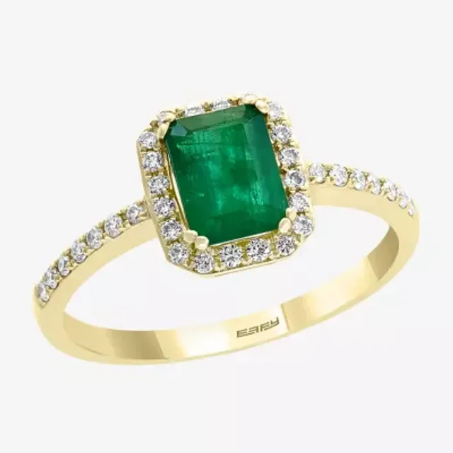 Effy Womens 1/ CT. T.W. Diamond & Genuine Green Emerald 14K Gold Cocktail Ring