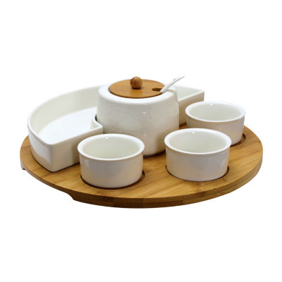 Elama Signature 12 Inch 7pc Condiment Server Set with a Bamboo Lazy Suzan Serving Tray