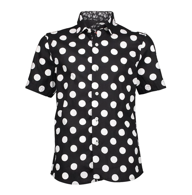 Elie Balleh Big Boys Black Short Sleeve Navy Polka Dot Slim Fit Shirt