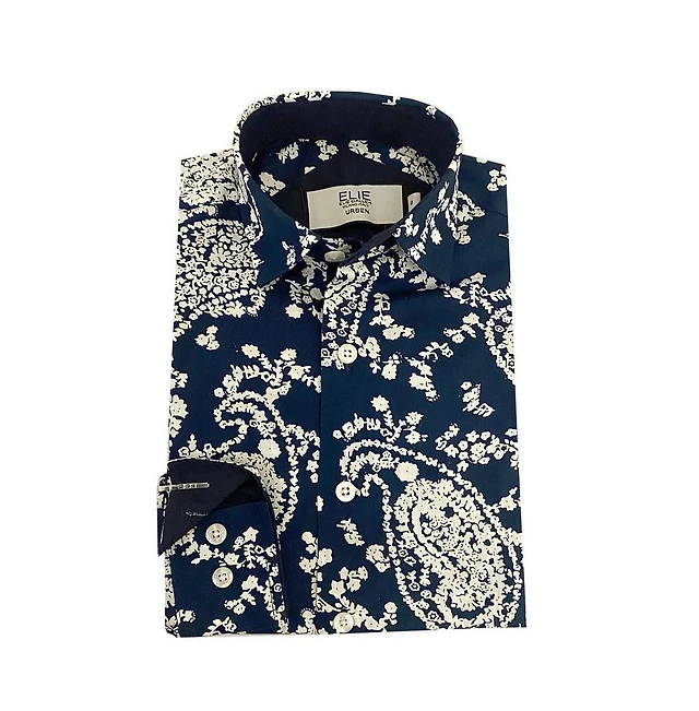 Elie Balleh Big Boys Navy Paisley Pattern Slim Fit Shirt