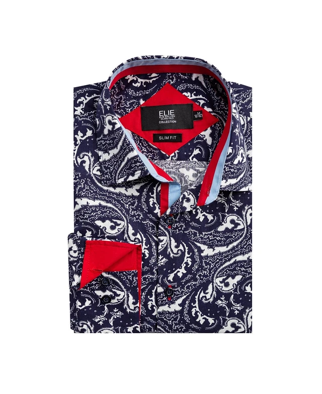 Elie Balleh Big Boys Navy Paisley Pattern Slim Fit Shirt