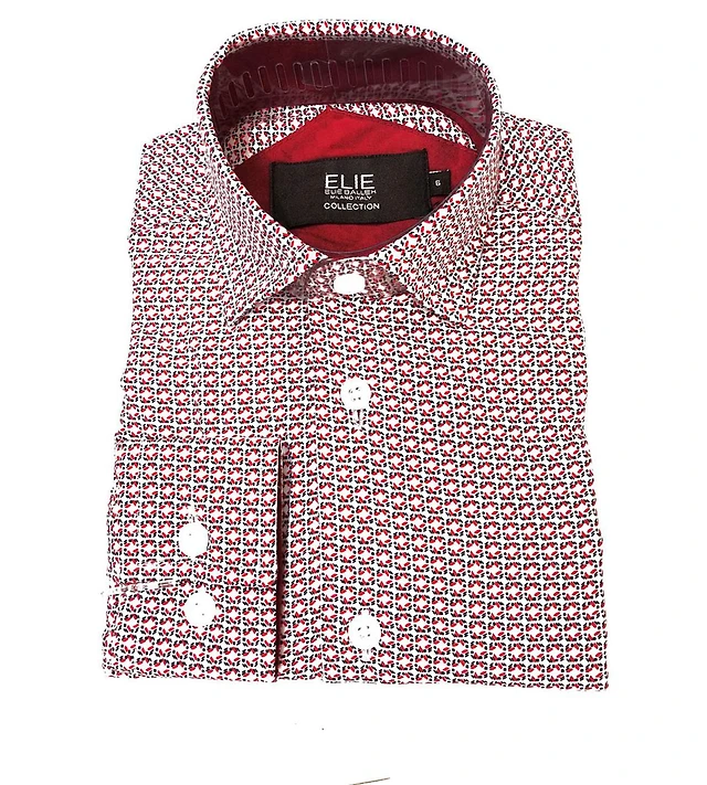 Elie Balleh Big Boys Red White Neat Short Sleeve Slim Fit Shirt