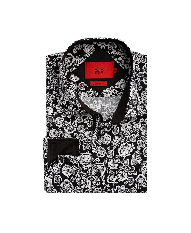 Elie Balleh Big Boys Black Slim Fit Paisley Dress Shirt