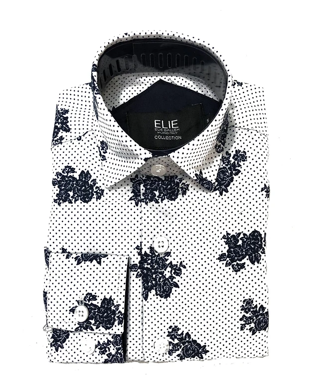Elie Balleh Big Boys White Slim Fit Floral Print Shirt