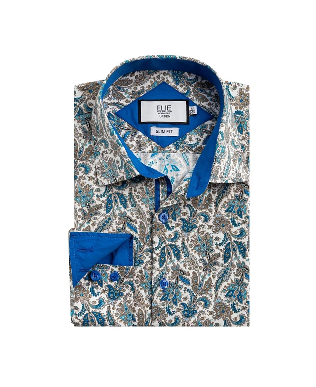 Elie Balleh Big Boys Blue Paisley Slim Fit Shirt