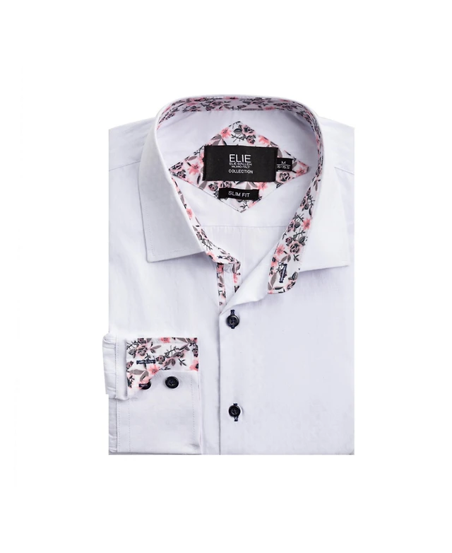 Elie Balleh Big Boys White Slim Fit Floral Dress Shirt