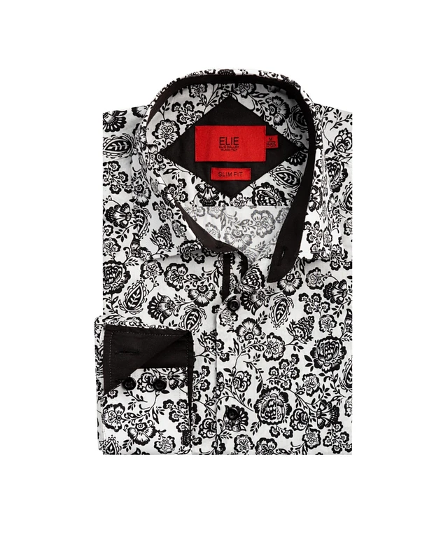 Elie Balleh Big Boys White Slim Fit Floral Print Shirt