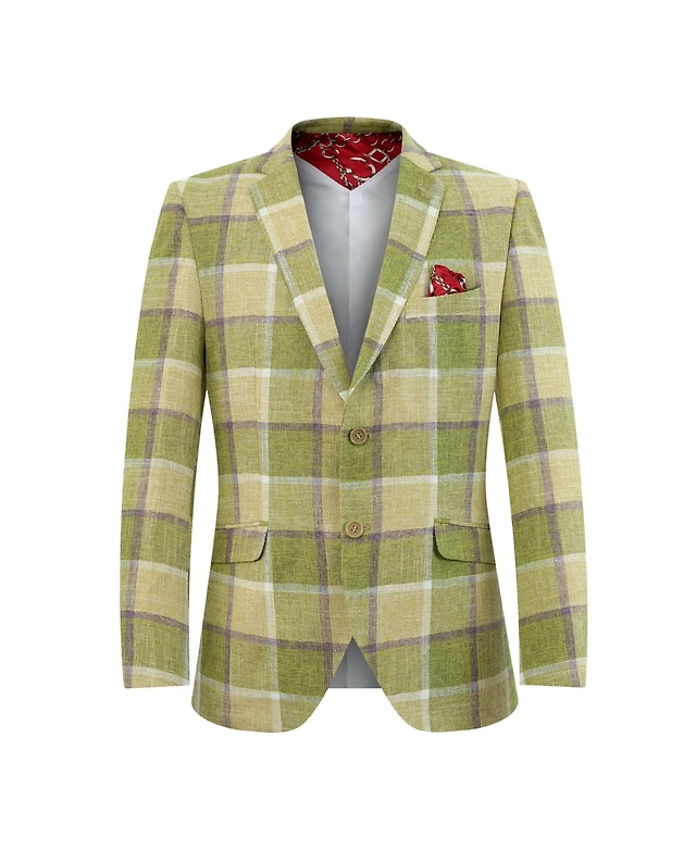 Elie Balleh Boys Green Slim Fit Plaid Blazer