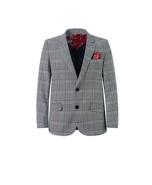 Elie Balleh Boys Grey Slim Fit Windowpane Plaid Blazer