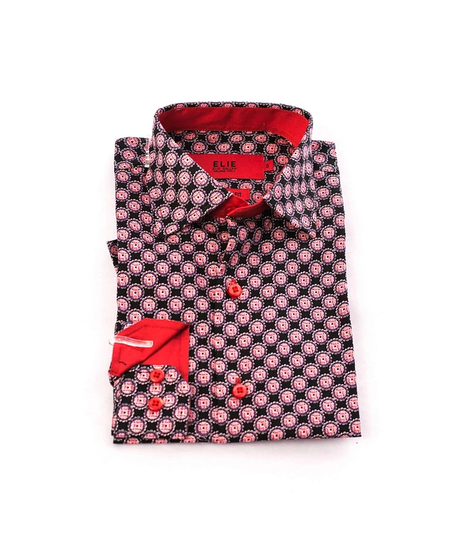 Elie Balleh Little Boys Red Slim Fit Printed Button-Down Shirt