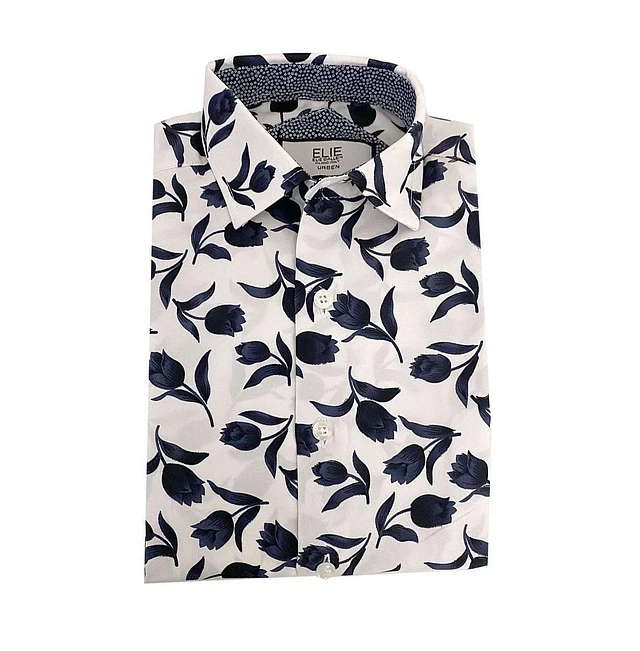 Elie Balleh Big Boys Blue Floral Button-Down Slim Fit Short Sleeve Shirt