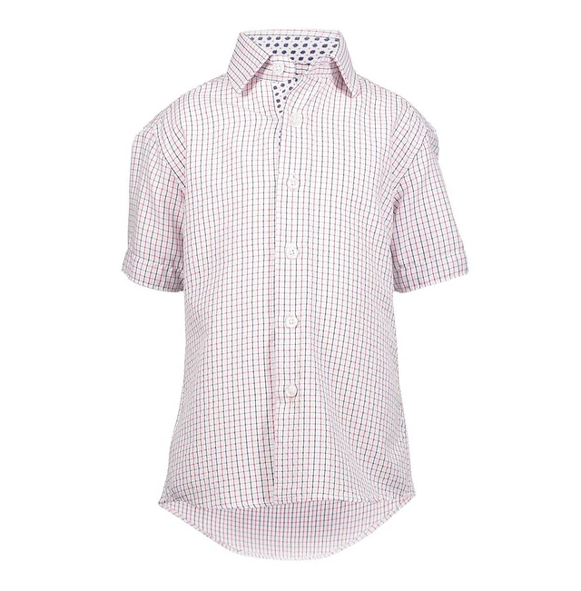 Elie Balleh Little Boys Red Short Sleeve Navy Tattersal Slim Fit Shirt