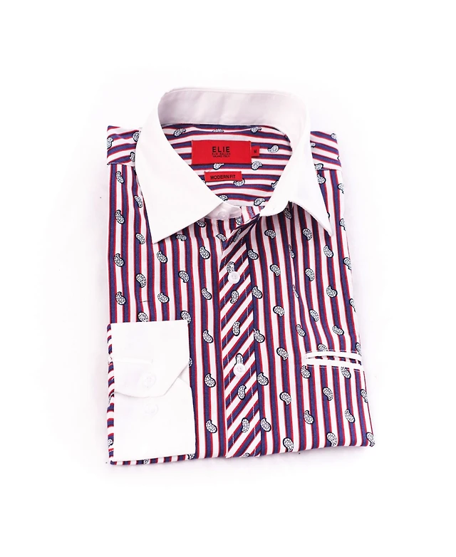 Elie Balleh Little Boys Red Slim Fit Printed Button-Down Shirt