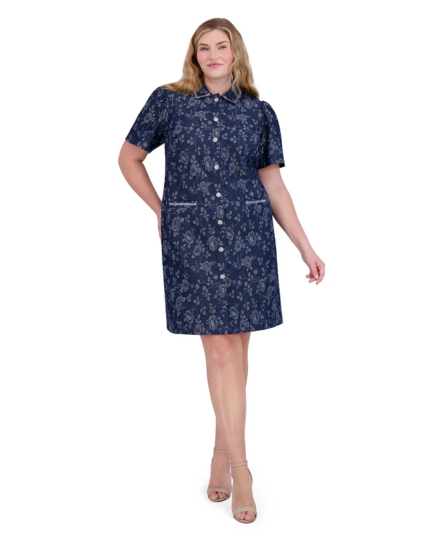 Eliza J Plus Embellished Floral Denim Shirtdress