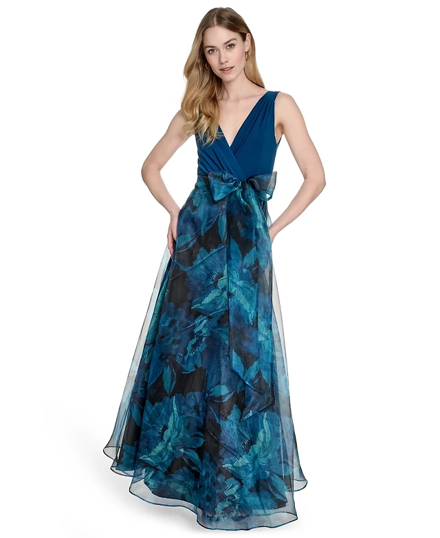 Eliza J Women's Surplice Printed-Skirt Sleeveless Gown