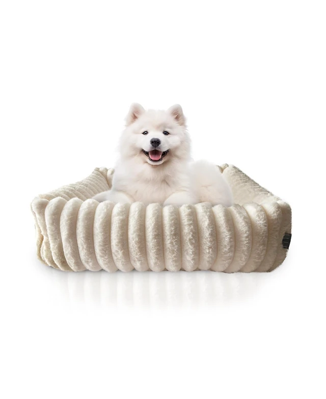 Details Rectangle Dog Bed, Durable Sleeping Calming Cuddler for Pets, Super Plush Corduroy Sherpa