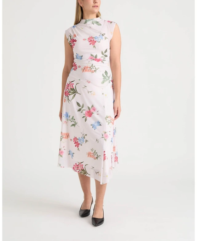 Ellen Tracy Women's Printed Mesh Dress with Handkerchief Hem