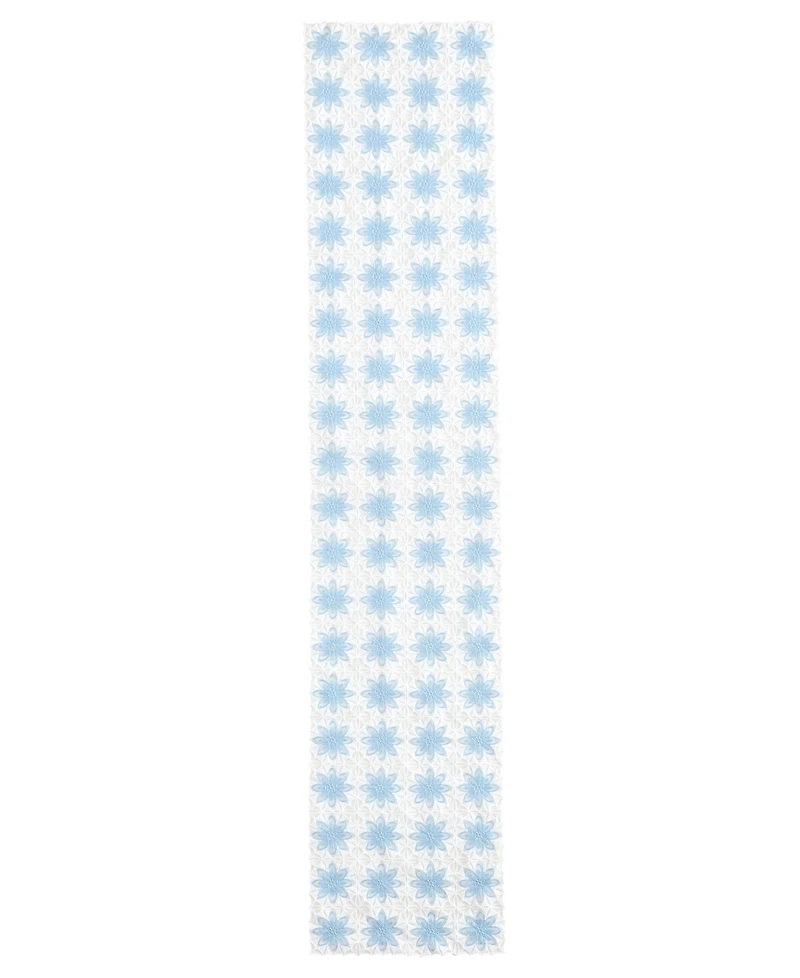 Infuse an artisanal touch to your home with this runner by Elrene, featuring a delicate crochet pattern of blue flowers on a white background. Its carefully crafted design keeps a beautiful shape, perfect for everyday use on buffets and consoles.
