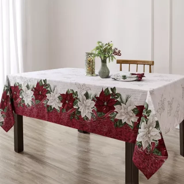 Elrene Home Fashions Festive Poinsettia Tablecloth