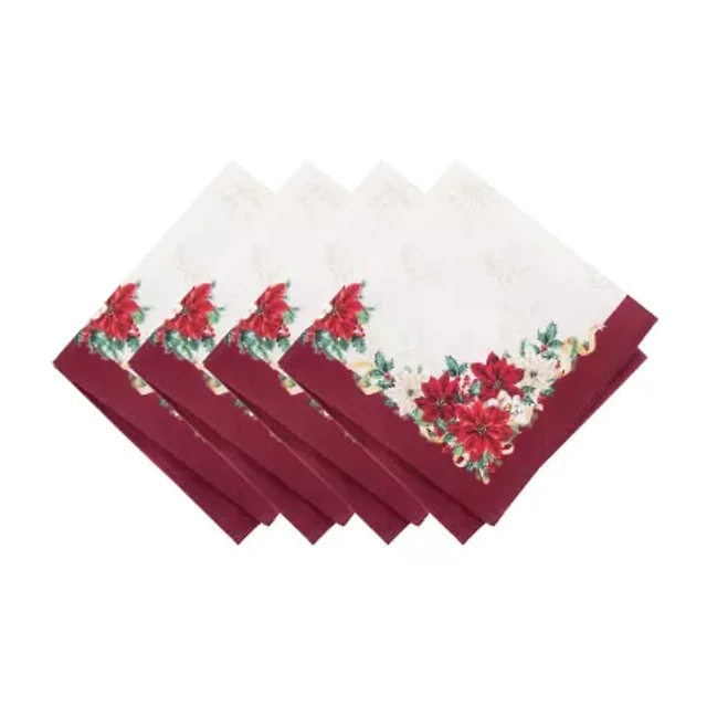 Elrene Home Fashions Poinsettia Garlands Engineered 4-pc. Napkins