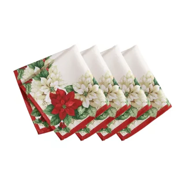 Elrene Home Fashions Poinsettia Garlands Engineered 4-pc. Napkins