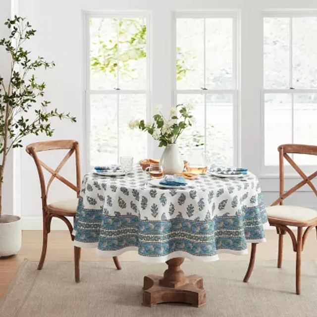 Elrene Home Fashions Tropez Block Print Stain & Water Resistant Indoor/Outdoor Round Tablecloth