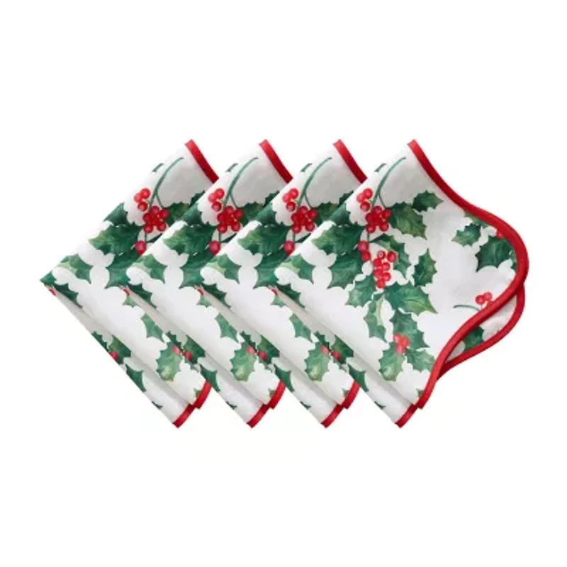 Elrene Home Fashions Vintage Holly Scallop Border 4-pc. Napkins
