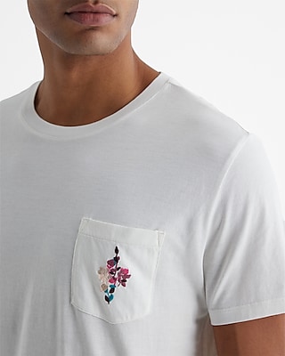 Embroidered Bouquet Perfect Pima Cotton Pocket T-Shirt
