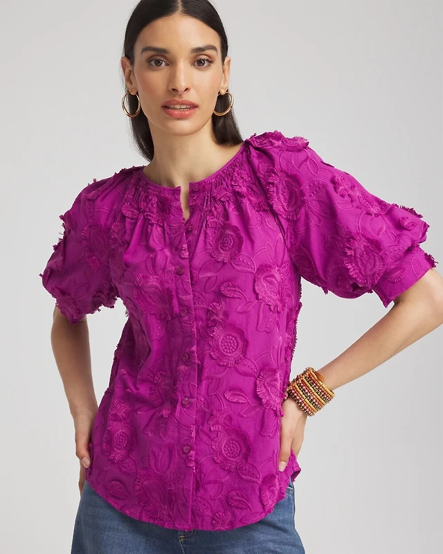Karl Lagerfeld Paris Women's Tonal Embroidered Top