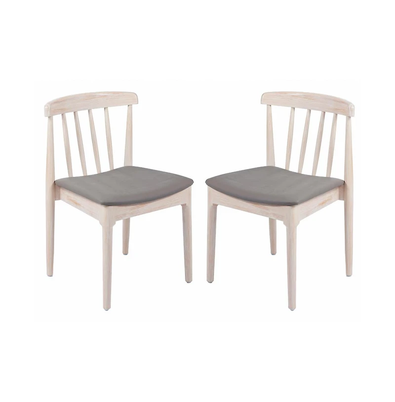 Emma+Oliver Charlize Set Of 2 Solid Wood Dining Chairs With Spindle Backrests And Vinyl Seats
