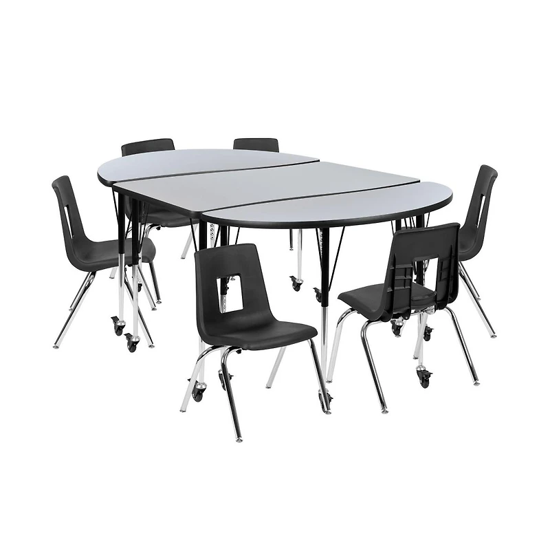 Emma+Oliver Mobile 76" Oval Wave Collaborative Laminate Activity Table Set With 16" Student Stack Chairs