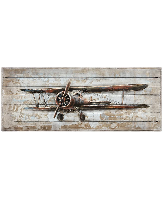 Empire Art Direct Model airplane Metallic Handed Painted Rugged Wooden Wall Art, 24" x 60" x 2.6"