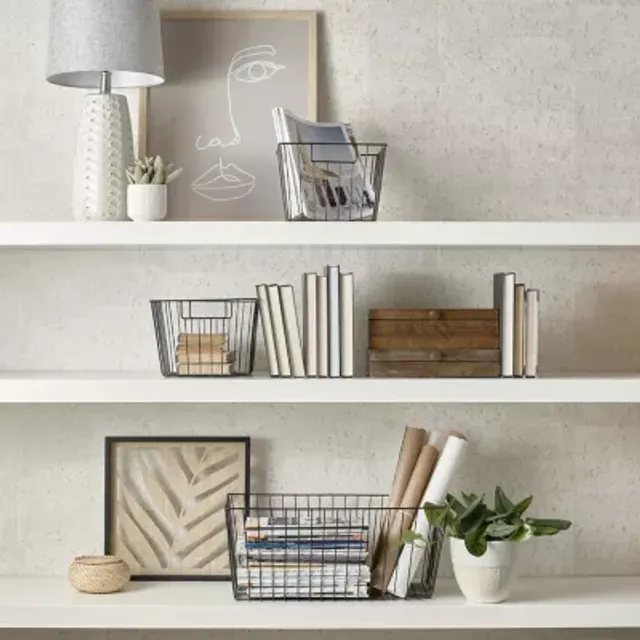 Oceanstar Metal Wire Organizer Bin Basket with Card Holder, Set of 3, Black