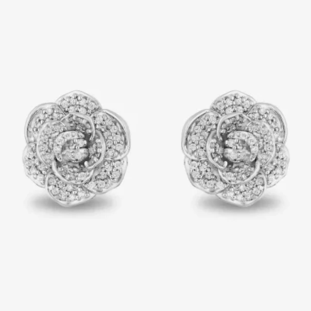 Enchanted Disney Fine Jewelry 1/2 CT. T.W. Natural White Diamond 14K White Gold 16.8mm Flower Cinderella Princess Stud Earrings