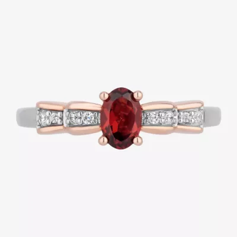 Enchanted Disney Fine Jewelry Snow White(I,I2) Womens 3/4 CT. T.W. Genuine Red Garnet 14K Rose Gold Over Silver Sterling Oval White Cocktail Ring