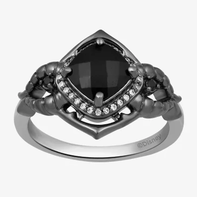 Enchanted Disney Fine Jewelry Villains Womens 1/10 CT. T.W. Genuine Black Onyx Sterling Silver Maleficent Sleeping Beauty Cocktail Ring