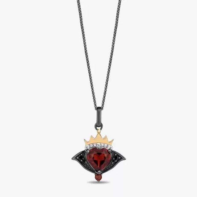 Enchanted Disney Fine Jewelry Villains Womens Diamond Accent Genuine Red Garnet 14K Gold Over Silver Crown Heart 18 Inch Pendant Necklace