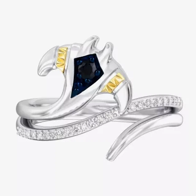 Womens Diamond Accent Genuine Blue Topaz Sterling Silver Aladdin Princess Jasmine Cocktail Ring