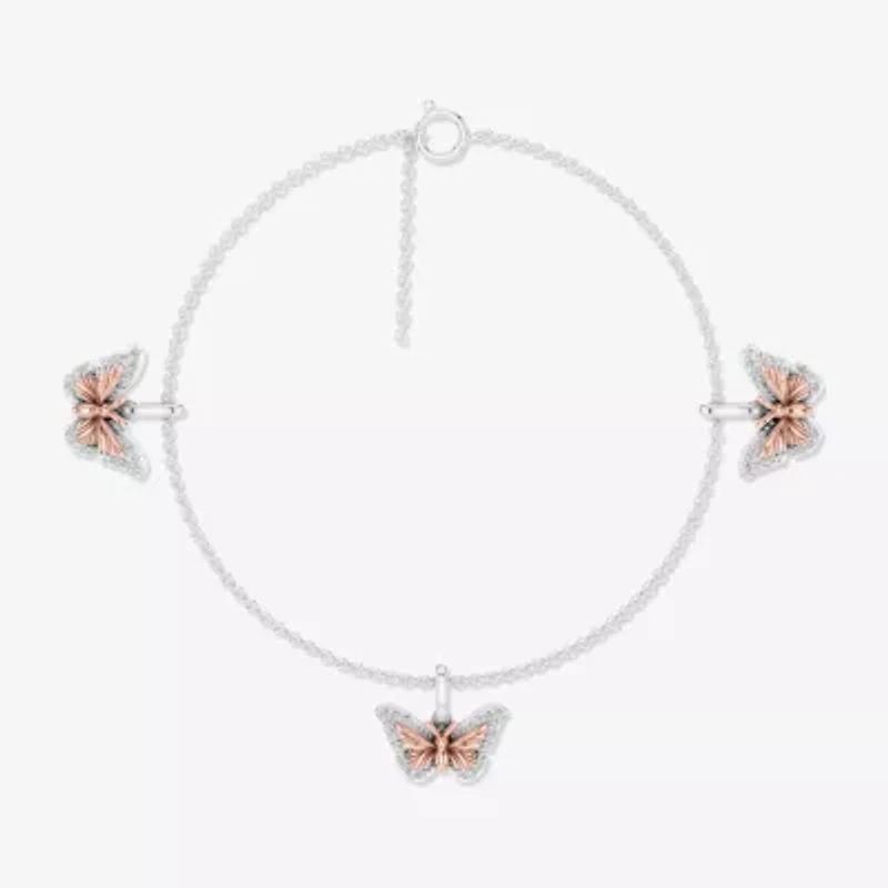 Enchanted Disney Fine Jewelry Womens 1/6 CT. T.W. Natural White Diamond 10K Rose Gold Sterling Silver Princess Mulan Charm Bracelet
