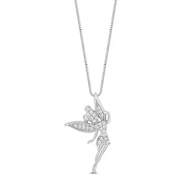 Enchanted Disney Fine Jewelry Womens 1/8 CT. T.W. Natural White Diamond Sterling Silver Fairies Tinker Bell Pendant Necklace