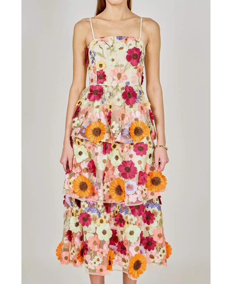 endless rose Women's 3D Foral layeredmidi dress