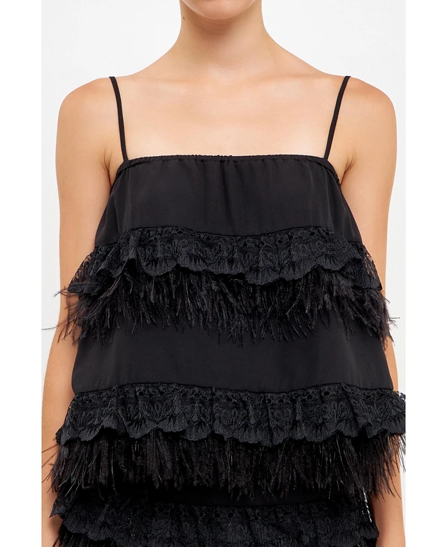 endless rose Women's Gridded Mesh Feathered Cropped Top
