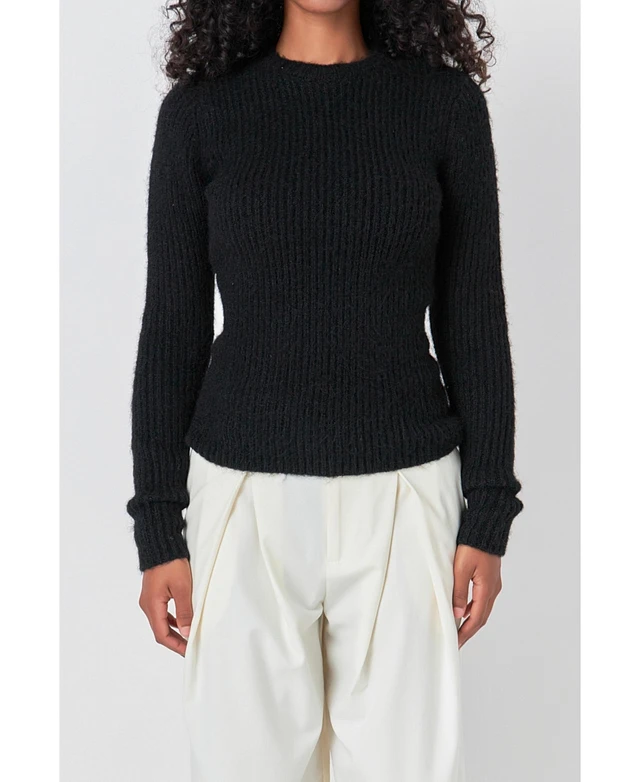 endless rose Women's Long Sleeve Open Back Knit Mini Dress